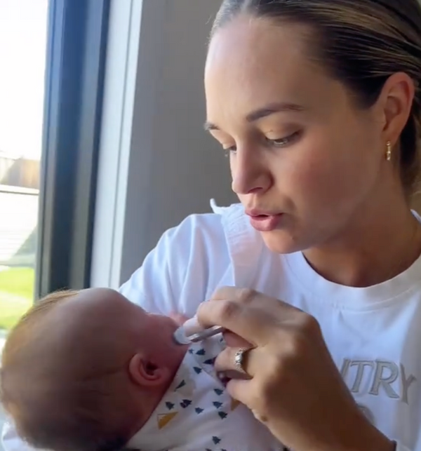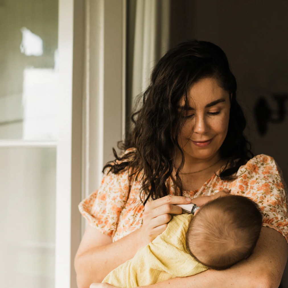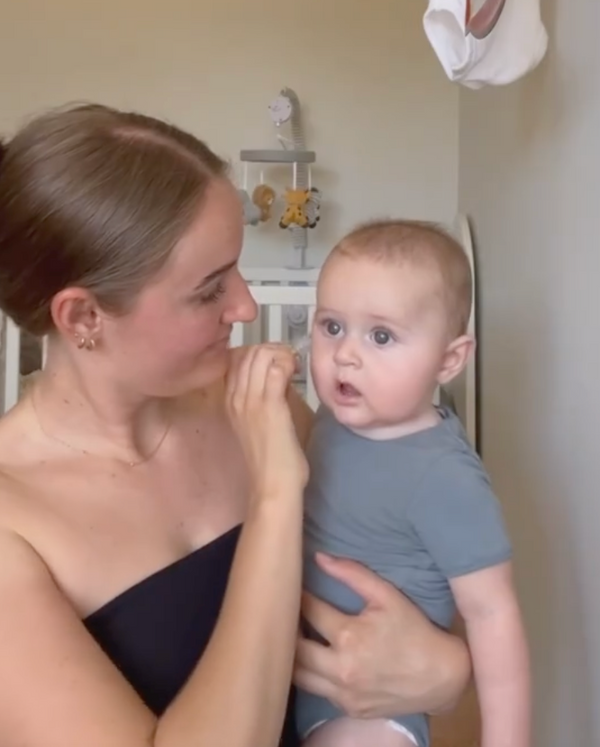 Open the lid and Roll EaseRoll™ gently onto the baby’s jawline or cheeks.